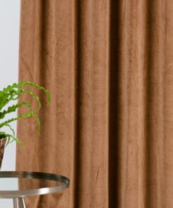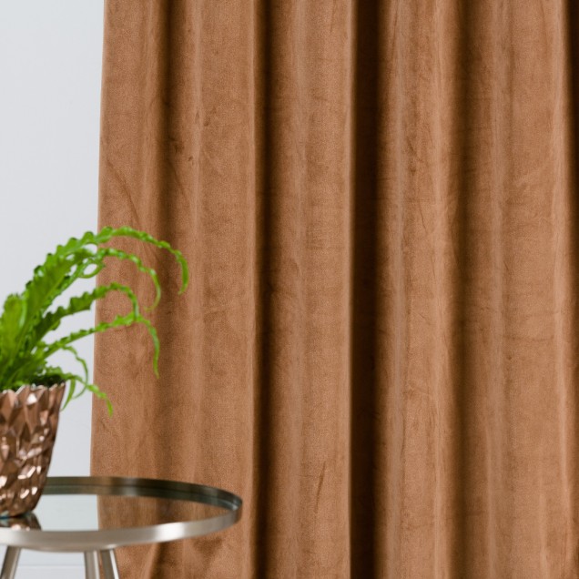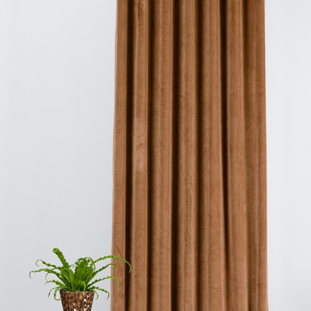 Draperie Castellano din catifea de lux, culoare caramel, cu pliuri elegante, perfectă pentru decor modern sau clasic.