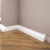 Plintă decorativă albă din material dur. Plinta se montează prin lipire. Adezivii necesari de montaj şi de îmbinare îi regăsiţi în pagina Adezivi. Se poate vopsi în orice culoare. Puteți utiliza orice tip de vopsea care nu conține substanțe derivate din petrol: vopsea emulsie, vopsele latex, vopsea acrilică, vopsea acrilică-latex, vopsea de vinil, vopsea ceramică. Vopsea pentru profile decorative puteți găsi pe site-ul diagram.ro. După vopsire se curăţă foarte uşor cu un burete sau o carpă moale, înmuiate în apă curată şi bine stoarse. Este potrivit atât pentru proiecte HoReCa, cât şi rezidenţiale (livinguri, dormitoare, holuri,băi). Se poate monta în baie sau în locuri umede. Se poate folosi pentru parchet, mochetă, gresie, marmură, granit, etc. Vă putem asigura montaj profesionist.