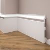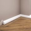 Plintă decorativă albă din material dur. Plinta se montează prin lipire. Adezivii necesari de montaj şi de îmbinare îi regăsiţi în pagina Adezivi. Se poate vopsi în orice culoare. Puteți utiliza orice tip de vopsea care nu conține substanțe derivate din petrol: vopsea emulsie, vopsele latex, vopsea acrilică, vopsea acrilică-latex, vopsea de vinil, vopsea ceramică. Vopsea pentru profile decorative puteți găsi pe site-ul diagram.ro. După vopsire se curăţă foarte uşor cu un burete sau o carpă moale, înmuiate în apă curată şi bine stoarse. Este potrivit atât pentru proiecte HoReCa, cât şi rezidenţiale (livinguri, dormitoare, holuri,băi). Se poate monta în baie sau în locuri umede. Se poate folosi pentru parchet, mochetă, gresie, marmură, granit, etc. Vă putem asigura montaj profesionist.