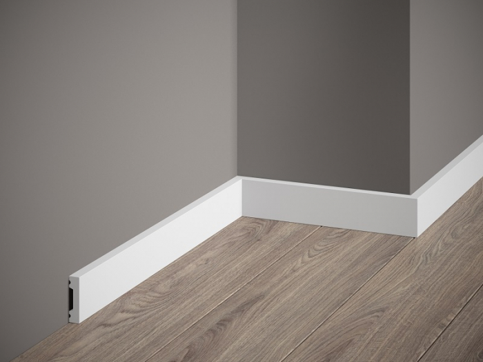 Profil cu design simplu, curat, potrivit pentru orice stil si in orice tip de incapere. Fabricat din polimer rigid, 100% rezistent la apa si foarte rezistent la factori mecanici, acest profil poate fi folosit atat la plinta cat si pentru ancadramente.