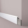 Plinta CF2S din polimer dur este un produs de calitate premium, culoare alb mat, specifică stilului minimalist. Prin design-ul său unic și simplist este potrivit pentru locuințele realizate în stil clasic, romantic și contemporan-elegant. Se armonizează perfect cu restul încăperii în care este montată și poate fi vopsită în orice culoare prin vopseaua acrilică. Are proprietatea de a ascunde defectele de finisare.