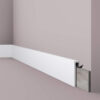 Plinta CF3 din polimer dur este un produs de calitate premium, culoare alb mat, specifică stilului minimalist. Prin design-ul său unic și simplist este potrivit pentru locuințele realizate în stil clasic, romantic și contemporan-elegant. Se armonizează perfect cu restul încăperii în care este montată și poate fi vopsită în orice culoare prin vopseaua acrilică. Are proprietatea de a ascunde defectele de finisare.