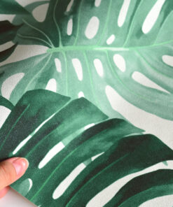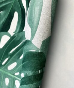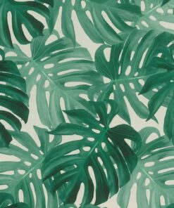 Frunzele voluminoase sunt așezate pe un fond deschis, adaugand un aer de rafinament si evoca amintiri ale vacantelor exotice.
