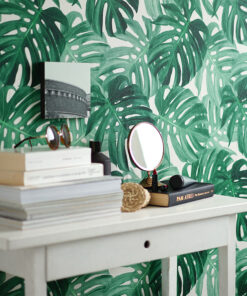 Aspectul de jungla in amenajarile interioare și tapetul cu frunze de bananier este alegerea ideala in proiectele vibrante și moderne.