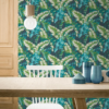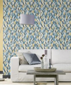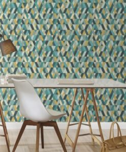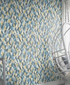 Tapetul geometric in nuante splendide de magenta, galben si turcoaz este foarte usor de integrat in proiectele de amenajare interioara.