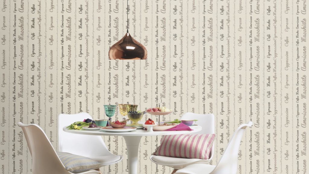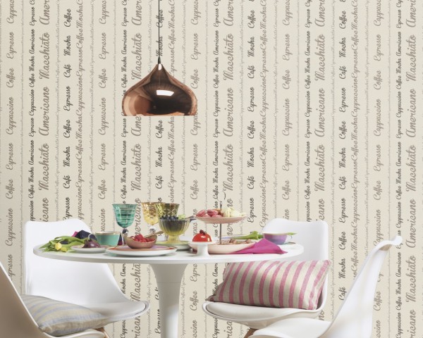 Tapetul Rasch 432916 cu litere se incadreaza in stilul modern, putand fi aplicat in birouri, camere copii si adolescenti.